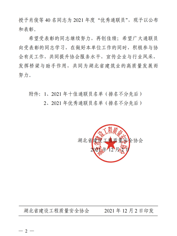 關(guān)于表彰2021年度十佳通聯(lián)員和優(yōu)秀通聯(lián)員的決定