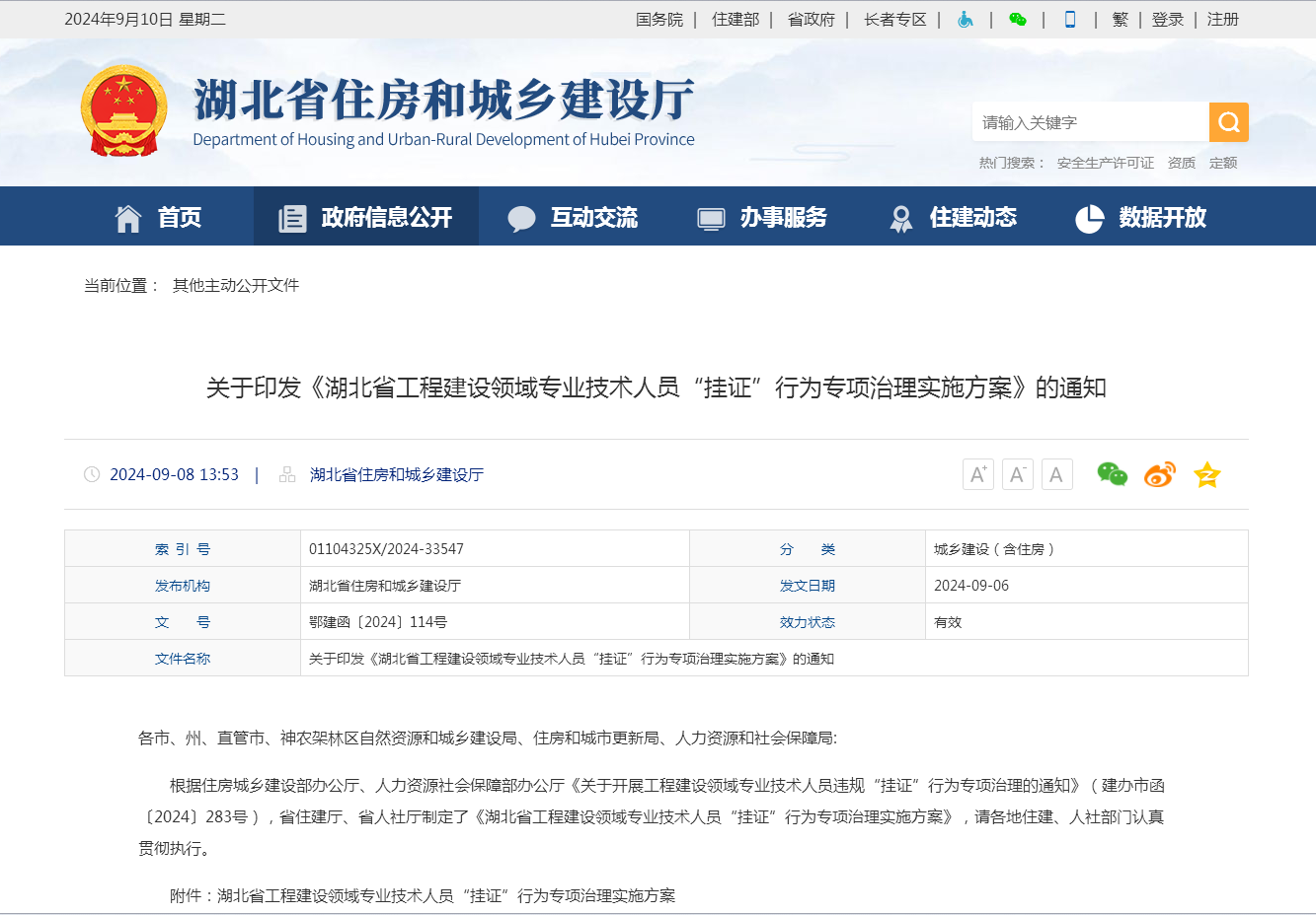 關(guān)于印發(fā)《湖北省工程建設(shè)領(lǐng)域?qū)I(yè)技術(shù)人員“掛證”行為專項(xiàng)治理實(shí)施方案》的通知